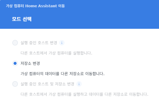 저장소 변경을 선택 후 SSD 볼륨을 선택하고 마이그레이션을 하면 됩니다.