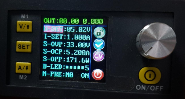 짧게 누르면 전류 설정이 되며 SET: 0.000 숫자에 커서가 나타납니다. 다이얼을 누르면 커서 위치가 변경됩니다. 다이얼을 돌리면 값이 변경됩니다. 실시간으로 적용됩니다.